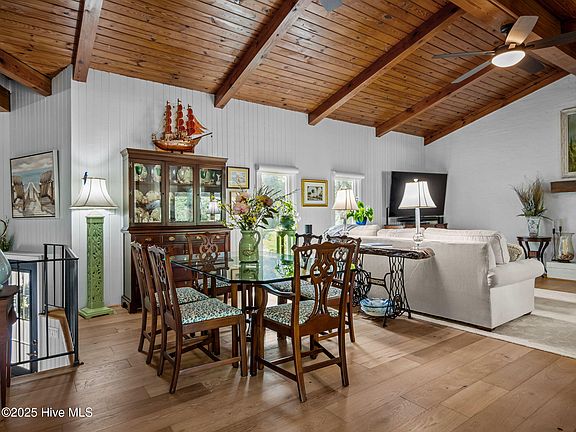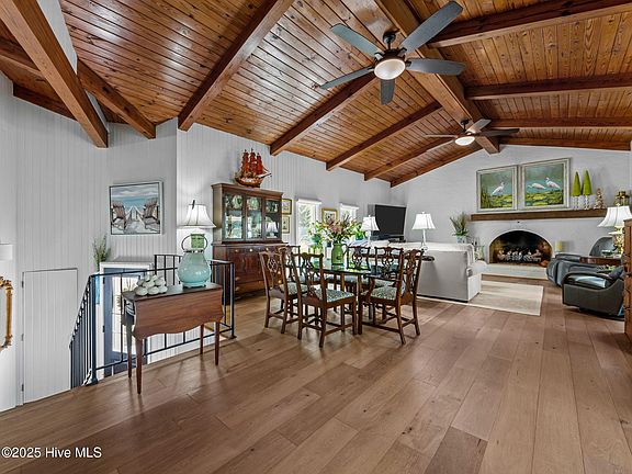 Welcome to your new coastal retreat at 106 Pecan Court. Discover this stunning deepwater canal front home in Pine Knoll Shores. Perched high on a natural dune out of the flood zone, (no flood insurance required) this property offers peace of mind and exceptional waterfront living. All the hard work has been done. With new hurricane rated windows and doors, fortified roof, septic system, garage door & opener, seamless gutters, and mini split HVAC in the primary bedroom, your biggest concern will be where to take the boat for the day. And yes, your boat is waiting along the 99' of canal frontage on one of 2 boatlifts. Boasting 4 bedrooms/2 baths, the home features timeless vaulted beadboard ceilings in the living room, kitchen, & primary bedroom for a touch of coastal charm. Enjoy multiple amenities including a chef's kitchen w/ SS appliances, custom island & quartz counters, outdoor kitchen, screened-in porch & deck overlooking the canal, flagstone patio for cool nights around a firepit, & a peaceful hammock haven. Walk outside & discover what draws you to this island paradise The beautifully landscaped yard includes irrigated raised garden beds and numerous outdoor seating areas, perfect for entertaining. Additional highlights include a one-car garage & a golf cart path leading to covered storage, making this a perfect coastal dream home. Just when you are sold on the home itself, it gets better. Pine Knoll Association has incredible amenities costing only $170/year including private beach front access with parking, boat ramps, kayak launches, marinas, sound front parks, playgrounds, & picnic areas. All accessible by golf cart. There is also the fabulous Crystal Coast Country Club available at a separate fee. The Crystal Coast is famous for its fishing, restaurants, pristine beaches, aquarium, Fort Macon, Cape Lookout & wild horses bordered by the quaint historic towns of Beaufort & Swansboro. Don't miss your opportunity to own this paradise waterfront property!