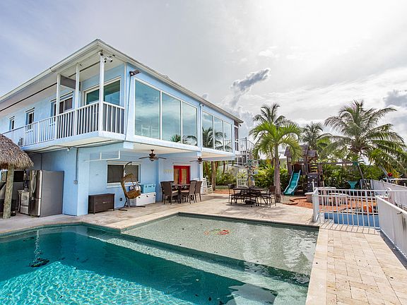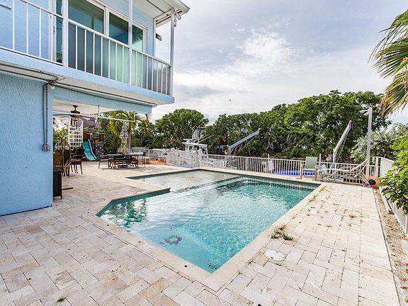 This home has it ALL! 5 bedrooms, 3 baths, 2 boat lifts, tiki hut AND a POOL!! The open concept kitchen, living and dining areas overlook the pool and dock. The 70 ft. Dock has a 20,000 lb. boatlift and a 3,000 lb. lift plus davits. The tiki hut by the pool will make outdoor entertaining a breeze. The pool has seating and a sunshelf with a large pavered deck leading out to the dock. This house was made for fun times and has room for family AND friends with 3 bedrooms and 2 baths upstairs and 2 bedrooms and 1 bath downstairs. Downstairs is above the flood zone and permitted. Side and back yard are fenced while the driveway is open and pavered. Come and take a look, you will not be disappointed!