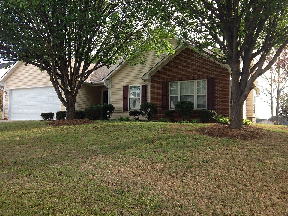 What a hidden gem of a community located within minutes of downtown Greenville, yet also convenient to shopping and business alike. All one level and all solid surface floors, including laminate wood floors throughout most of the home and ceramic tile floors in the kitchen and baths. The open floor plan with vaulted ceilings enhances the free feeling, yet the split bedroom floor plan allows for the separation you will love. The master suite has vaulted ceiling with ceiling fan, dual closets, dual vanity and separate water closet, plus garden tub/shower. The two spare bedrooms, on the other side of the home, compliment the storage with two closets in one of the bedrooms and a walk in closet in the other. The kitchen, which opens from the great room, features eat in breakfast area with bay window and window seat, plus white cabinets and refrigerator with water and ice to remain. The great room is just that, with vaulted ceiling, ceiling fan, plus gas logs in the fireplace and plant ledge