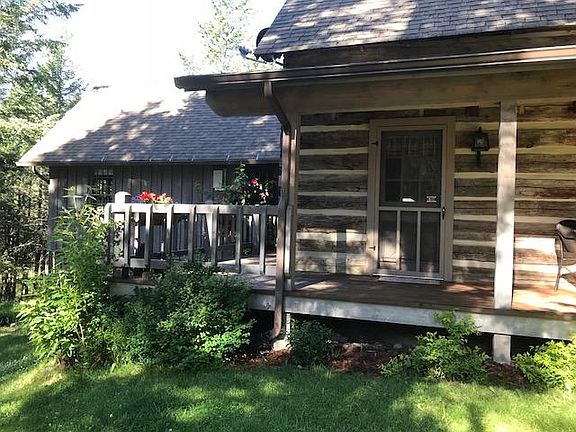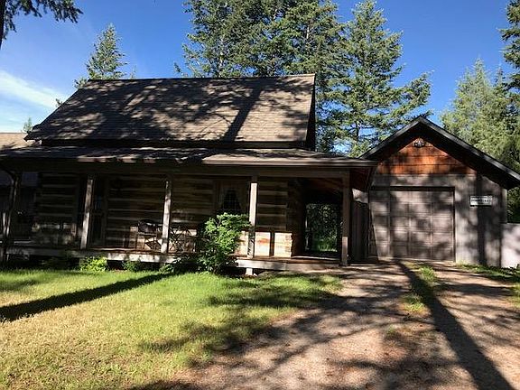 Rebuilt history log cabin rebuilt with additional living space added. The old flat logs are well preserved, large spacious upper floor bedroom. Lower level has private bathroom. Master and utilities on main floor. Covered deck over looking the property. There is garden area and larger storage shed. The extra large single car garage has large storage room at the end. Armour closet, living stand along cabinet and shelving stay with home Kitchen gas stove being replaced. Just minutes from Bigfork!!