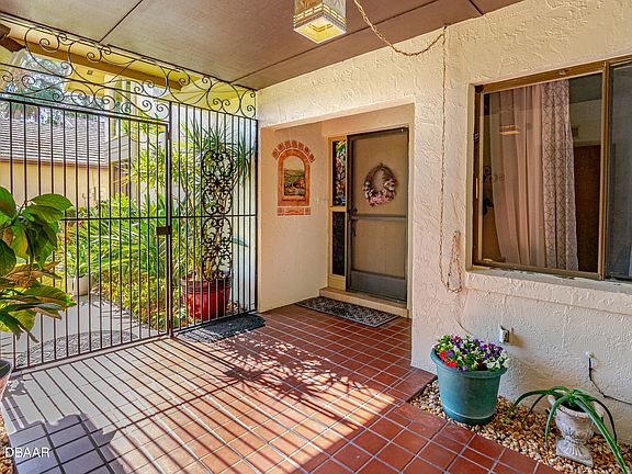 Wonderfully Maintained Home Full of Natural Light & lots of space in a Great Neighborhood close to Everything! 4 BEDs/3 BAs with 2 level living, offers 1 large BED & FULL BATH on 1st Floor & 3 BDs Upstairs. with additional Full Guest Bath & Full Ensuite Bath. Enter through the gated Courtyard to Soaring Vaulted Ceilings & Stunning Coquina Stone Woodburning Fireplace in Open Living Areas. Large formal Dining Area connected to Kitchen with Breakfast Bar & Casual Dining makes for seamless Entertaining as does the Screen Room overlooking the beautiful mature landscaping behind! 1st Floor Bedroom connects directly to full bath with step in shower. Check out the Upstairs Primary with Ensuite, Deck & Huge WIC, the many new windows & 2 New Sliders, Granite Counters, New AC in 2021 & MUCH MORE. Pictures tell the story as too much to list here! Extra Built in Storage in Oversized Garage & Separate Storage room in Courtyard Entry! Inside Laundry! Ceilings to 18'! Back Patio. Garage Door Opener & Spring, Upstairs Guest Bath Shower & garbage disposal 2022; Fridge, Exterior Paint, Back Fencing, HVAC, Window replacements 2021; Carpet, Toilets, Microwave 2020; Granite Counters, Screen Room added 2010. See Wind Mit. & 4 Pt reports for Age/Benefits of Rustic Metal Roof with "15-20 years of remaining Useful Life." No water intrusion from Hurricane Ian. Quiet location yet in the heart of Everything Daytona Beach has to offer, like: One Daytona; Tanger Outlet Mall & other shopping; Daytona International Airport; Institutions of higher learning; restaurants; major roads; hospitals; museums; the Hard Rock Café Hotel; and, of course, the ''World's Most Famous Beach!'' And just an hour West to Orlando Theme Parks or North to St. Augustine! All information is deemed correct but not warranted & measurements are all approximate. Home is selling as is with inspections gladly welcomed. RING SYSTEM DOES NOT CONVEY.