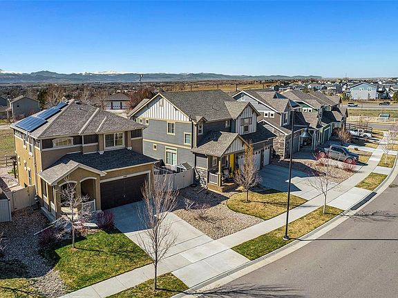 Gorgeous home located in desirable Erie Highlands neighborhood. Situated on a premium homesite with mountain views backing to open space! Main level has an Open layout with hardwood floors, s/s appliances with a gas range, 1/2 bath, large windows bringing in an abundance of natural light, custom rear patio with a pergola. Upstairs you will find your Owners' Suite with majestic mountain views, en suite primary bathroom, walk-in closet, two additional bedrooms with walk-in closets and laundry room, The basement is finished with a large family room that's great for an additional bedroom, office or entertaining room with a bar! The basement also hosts a steam shower! Solar is owned!! Erie Highlands features fantastic amenities including a beautiful community pool, clubhouse, Clayton park with baseball fields, playgrounds, covered picnic tables, trails and Highlands Elementary! See everything Erie has to offer with it's small town feel, majestic mountain views, 63,000sf community center and 20,000sf community Library! Close to shopping/dining, trails and parks! This one won't last!