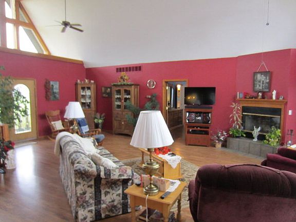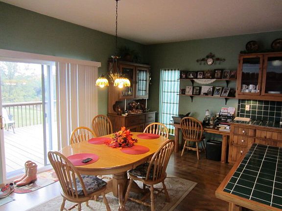 Beautiful country home situated on 6.5 acres m/l. Custom home was built in 1999 and offers over 3,400 square feet of living area and open floor plan. Take in the outdoors with a huge back deck overlooking a stocked pond and the south ridge of the property. The main level features an open kitchen and dining area complete with island, appliances, and walk in pantry. Off the kitchen is a mud room that leads to the two car garage. The open living room offers vaulted ceilings, fireplace, and huge windows to enjoy a country view. The master suite features his and hers sinks, whirlpool tub, and huge walk in closet. The finished walkout basement offers family room, 2 bedrooms, full bath, kitchen, and storage room. The house sits on 6 fenced off acres making a good sized yard to play or entertain.