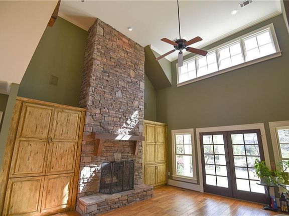 Fall in love with this (almost) overbuilt gem, with hardwood floors, a beautiful view of the creek & meticulously-kept rear yard from the stone porch & patio. Great room features a tall, stone, woodburning-fireplace, wall-speakers, built-in cabinets, tall ceilings, & plenty of ambient light from the rear windows & french doors to the outside. The chef's kitchen features all-stainless appliances (included) site-built, custom cabinetry, granite counters, a pantry, & an island. The master suite, on the main floor, features a tray ceiling, a separate jacuzzi tub & tile shower, granite counters, surrounded by custom cabinets, a separate water closet, & a walk-in closet. The other main floor room (could be considered a separate bedroom) or used as an office, contains a natural-wood, cathedral ceiling, with recessed lighting. Two bedrooms upstairs have private baths. The bonus room above the garage, could be used as a 5th bedroom, or flex space.