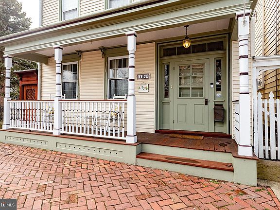 Here's an opportunity to reside in historic Bordentown City and own a piece of its rich history! This charming colonial home, dating back to the mid-1800s, seamlessly blends its historical character with modern amenities. With 2280 sq. ft. of living space and a finished attic on the third floor, there's plenty of room to spread out and enjoy. Upon arrival, you'll be greeted by a picturesque rocking chair covered front porch, setting the tone for the charm and character that awaits inside. Step through the door to find refinished hardwood floors throughout the classic center hall colonial layout. The formal living room features a decorative fireplace and elegant white columns, leading to a family room adorned with a stunning stained glass window. The formal dining room boasts its own stained glass window and sliding doors that open to a side deck, perfect for outdoor dining or relaxation. The recently updated kitchen showcases a classic brick gas fireplace as its focal point, along with upgraded cabinetry, a center island, granite countertops, stainless steel appliances, and a nearby pantry room and powder room. Ascend the front or back staircase to the second level, where hardwood floors continue. The large master bedroom features a skylight and window bench with beautiful views of the back yard, while the nearby fully renovated full bath offers a luxury tub and shower with glass doors, double vanity sink with marble top, marble tile floors, and a raised ceiling. The second bedroom includes a decorative fireplace, and the office/study can easily serve as a fourth bedroom if needed. On the third level there is a huge third bedroom. Additional features of the home include gas heat and central air, as well as a full basement providing ample storage space. Outside, you'll find your own private retreat in the fenced backyard, where flowering trees and shrubs, including the graceful lace leaf Japanese Red Maple and vibrant hydrangeas, create a picturesque backdrop. Follow the paver walkway to discover a lower second deck with built-in benches, offering the perfect spot to unwind and enjoy the tranquility of your surroundings. Situated close to major highways such as Route 130, 295, and the NJ Turnpike, as well as NJ Transit stations with service to NYC and Philadelphia, commuting is convenient. Enjoy a short walk to the quaint downtown Bordentown, offering shops, restaurants, schools, places of worship, and the Lite Rail. Don't miss this chance to own a piece of Bordentown's history while enjoying the comforts of modern living. Schedule a showing today and experience the allure of this remarkable home for yourself!