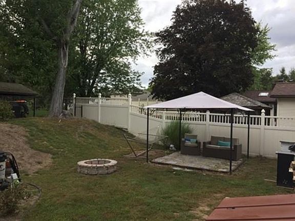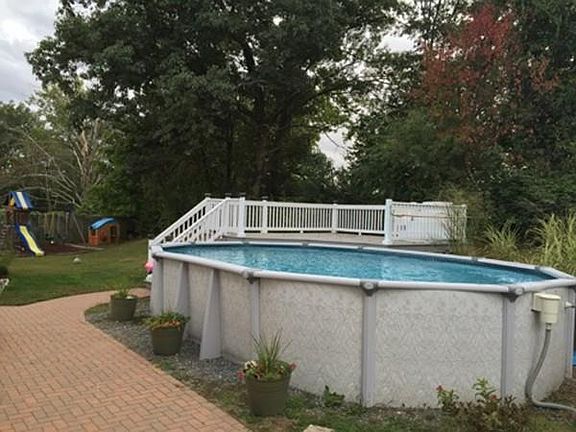 Ready for the holidays! This home is move in ready and family friendly. Modern kitchen with SS appliances, updated baths, liv room with a working fireplace, expanded master bedroom with walk in closet and dressing/sitting area. 2nd flr consists of 3 bedrooms (1 used as office) with HW floors and 3/4 bath. Plenty of closet space for storage. Partially finished basement for gatherings with a small workout space as well. NEW bulk head recently installed, 5yr young roof, replacement windows (liv rm & kitchen is new), 15x24 pool 7yr young with deck and fenced in yard ready for your spring/summer fun. Outdoor fun includes sitting area with fire pit for those chilly New England nights. (details apo)