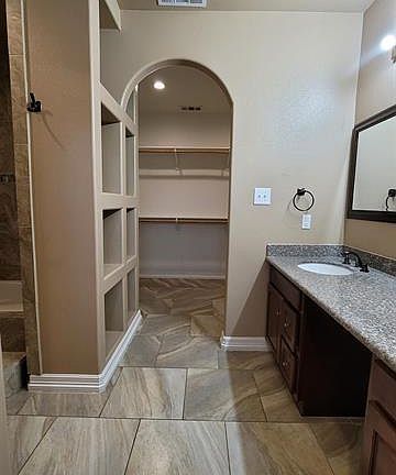 This beautiful home is ready to rent! The primary suite offers ample space with multiple walk-in closets, a double vanity, large walk-in shower, & a cozy bathtub for the perfect bubble bath. Throughout the house, you will find granite counter-tops, sleek tile flooring, and custom-built in shelves. The kitchen is supplied with updated appliances and provides an open concept to the living room, perfect for entertaining! Call today to check it out!