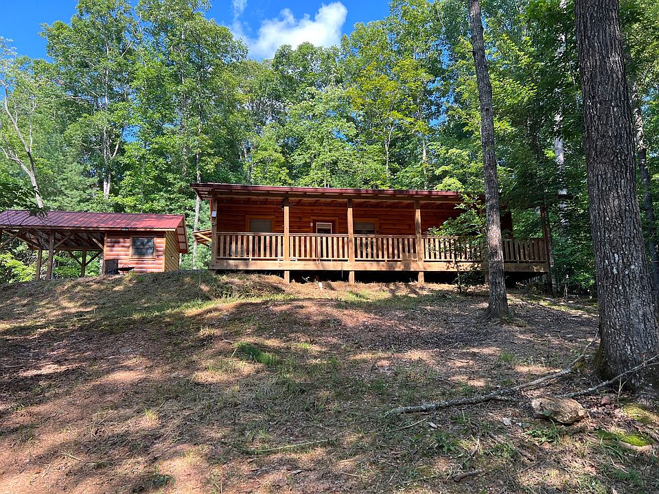 Murphy NC - End Of Road Privacy - Fiber Optic Internet - Carport for Parking w/ Storage Shed or Workshop - 2Bed/1Bath home has Metal Roof, Log Sided, Full Covered Front Porch, All Wood Interior, Granite Counter Tops, Open Great Room with Stack Stone Gas Log Fireplace, Excellent Condition, Large Wooded Yard perfect for your pets. Beyond the cabin's charm lies a world of adventure. Just a stone's throw away from Downtown Murphy, NC, Blue Ridge, GA, & Tennessee, you'll have easy access to a plethora of dining, shopping, & entertainment options. For outdoor enthusiasts, the area offers an array of opportunities. Revel in fishing & boating with access to 5 large TVA lakes or venture into Cherokee County, NC, where you will find 92,000 +/- acres of USFS.