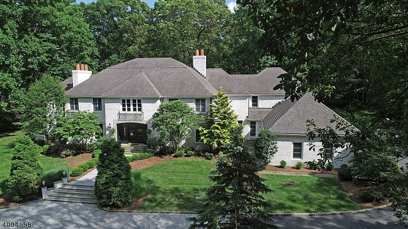 The complete transformation of a gated all-brick manor atop the Bernardsville Mountain has resulted in a chic, designer residence overlooking five-plus manicured acres. An extensive array of interior, exterior and Smart Home system upgrades installed over the past two years bring a fresh, modern aesthetic to this epic home. Towering windows and arched glass doors fill the open floor plan with natural light, lending a warm, inviting tone to oversized rooms. The grand layout includes five en suite bedrooms as well as two powder rooms and an attached three-car garage featuring a Tesla charging station. Highlights of the graceful custom-painted layout include fine architectural details, intricate millwork, six ornately-mantled fireplaces, custom Tischler windows, over $25,000 in lighting upgrades, soaring ceiling heights, arched doorways, renovated baths and flooring of gleaming hardwood, stone and tile. Outside, park-like surroundings are enhanced by two bluestone terraces, a circular drive, paver stone parking courtyard, professional landscaping and an elevated mountaintop setting on level acreage. Hinting at the extravagance inside is a two-story grand entrance foyer designed with an elegant butterfly staircase featuring custom cast iron spindles, marble floors and a glittering crystal chandelier. Expansive gathering areas span from this glamorous introductory space, including fireside living and dining rooms, both trimmed in classic millwork. The dining room is illuminated by a high-end crystal chandelier, while two-story custom silk curtains enhance the living room windows. From the living room there is access to a sun-splashed conservatory and cherry paneled study/billiards room. An aptly-named great room is generously proportioned for entertaining; it contains two-story ceilings, a fireplace flanked by arched windows, a well-appointed wet bar and glass doors to one of two bluestone terraces. In the chef's kitchen, recent additions such as new granite countertops edged by a new backsplash, an extra-large refinished center island, new sink and new hardware are joined by custom white cabinetry, upper-end stainless steel appliances, and a breakfast area anchored by a recently refinished fireplace. Nearby, the stylishly updated butler's pantry creates a delightful area for coffee or cocktails. The main level also includes a guest bedroom suite, laundry room and renovated powder room accented by a stacked stone wall. Upstairs, a huge landing overlooking the foyer and great room connects to four en suite bedrooms including the lavish master suite. This enormous owner's retreat contains two walk-in closets fitted with wardrobe organizers, dual master baths offering spa-like details, a fireside master sitting room and a huge bedroom, all situated in its own wing. This refined residence is served by two brand new whole-house generators; new Smart Home app-controlled systems for security, heating and cooling; and new outdoor LED lighting. A long list of updates shows pride of ownership in this stately Bernardsville Mountain manor home.