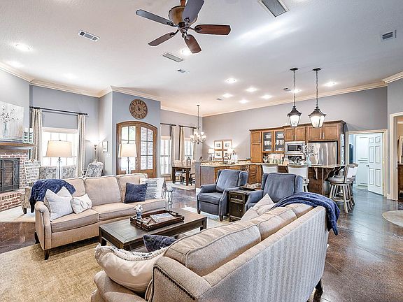 - Ceiling Fan(s), Walk-In Closet(s), Fireplace, High Ceilings, Granite Counters, Kitchen Island