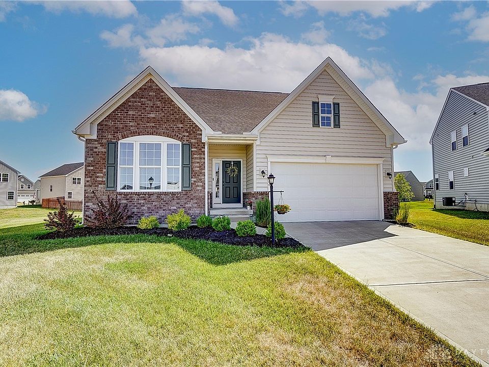 Definitely a "10" on this home including premium sized lot in a cul-de-sac location. Very livable ranch with upgrades such as granite countertop, dishwasher, cabinets, stainless steel appliances and glass backsplash in kitchen. Tiled walk-in shower, dual shower heads, tiled floor and double sink vanity. Gas fireplace in great room for the warm and cozy winter evenings. Lots of closets throughout. Owner installed a sump pump just to be on the safe side. Radon mitigation system installed, water softener and 50 gallon electric water heater. The deck is 15 x 14 with railings and steps to backyard Seller has a Guardian security system for $58.00 per month. A termite prevention system installed. Two car garage and a full unfinished basement with approx. 1682 sq. ft. Room to Roam.
