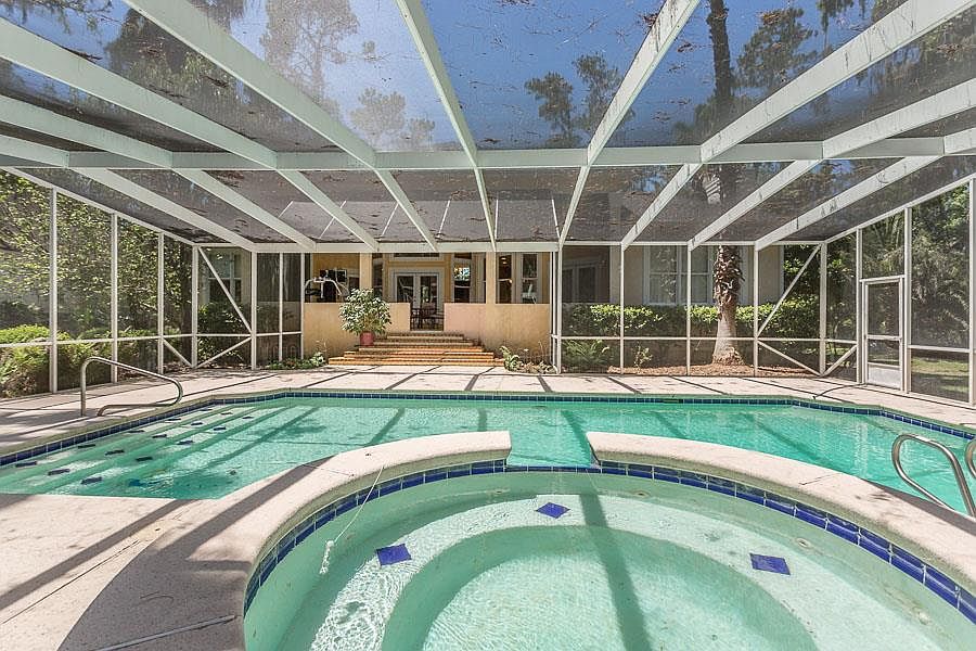 This well maintained 5BR/4BA home is spectacular. It has a formal dining room and formal living room, and a gorgeous kitchen with custom glazed cabinets. It has a huge screened-in lanai with in-ground heated pool and hot tub. New roof with 50 year shingles installed in 2017. Some other features include: Security system on all doors and windows with sensors, fire sensors with two monitoring stations, surround sound with individual controls in main living spaces and pool area, two zone water heating, 3 zone heating and AC, high ceilings in living areas with professional decorator designed paint on walls and ceilings, hardwood floors, deep well for irrigation and pool, two fireplaces with gas logs- one in the den and one in master bedroom/bathroom, and a granite wet bar with ice maker.