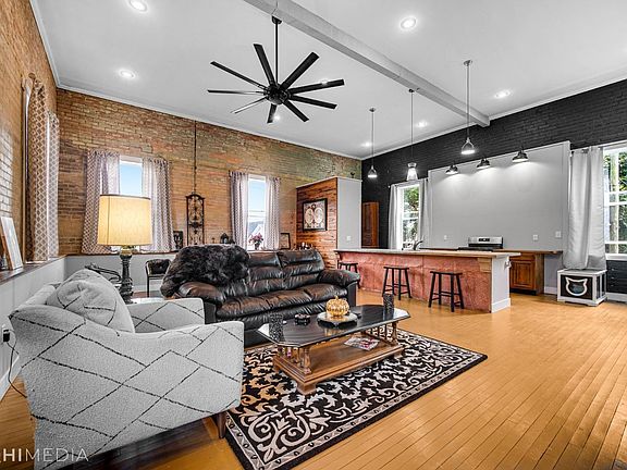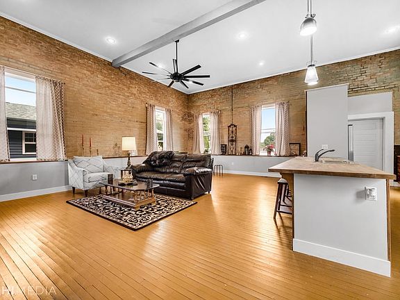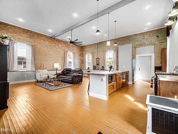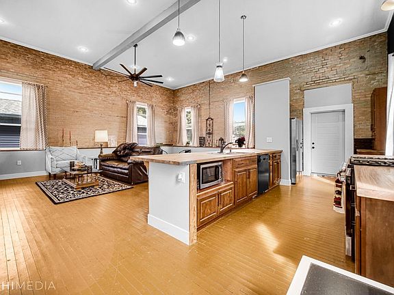 This fully-renovated former municipal building converted into a modern, lofted residence is truly like nothing else available! An all-brick structure in the heart of Westville, step in through the foyer & prepare to be WOWED by the open-concept living room/eat-in kitchen, boasting high ceilings, recessed lighting, exposed brick walls & original hardwood flooring! The large windows bring in tons of natural light, making the living room the perfect spot to get lost in a good book or entertain guests, while the eat-in kitchen has adorable fixtures & durable butcher block countertops! The two spacious bedrooms both feature exposed brick; the master includes a 7x7 walk-in closet & full bath en suite w/ double vanity! A full guest bath & laundry nook round out your living space, but the 1,900 sqft, partially-finished lower level affords you plenty of storage, or could serve as an art studio or auto shop (9ft garage door). A slice of urban charm with NEW everything, easy access to Valpo!