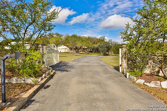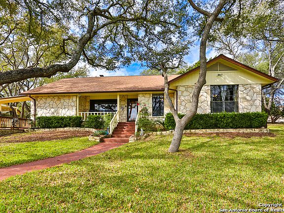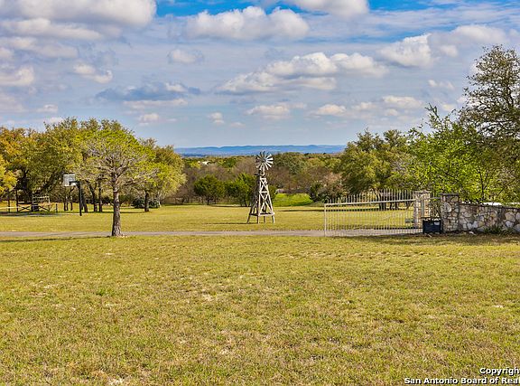 This custom hill country home is located on 6 gently rolling acres w/mature oaks, seasonal tank, sports court, tree house, RV barn, storage building & a rainwater capture system. Tall ceilings, a large rock fireplace greet you upon entry with a spacious living & dining room that offers beautiful views of the hill country. A 2nd large family room, sunroom, large master, & bedrooms w/walk-in closets. Granite & custom cabinets in the kitchen. Enjoy the ridge view from the deck & outdoor kitchen.