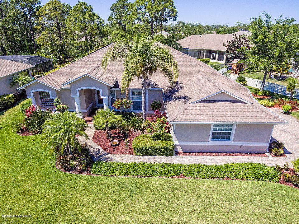This Custom home has it all - 4 BR's, Plus Office, 3 Bath's, 3 Car Garage, Plus a gorgeous Solar Heated Non-chlorine Pool in your own backyard with a large lanai for entertaining. This home shows like a model. Other features are Tile flooring in all main areas and carpet in the BR's, Granite counters in Kitchen, high ceilings throughout, solar h/w heater, side loaded garage. Master bedroom & bath were extend by 24'' for extra room. Master Bath boast a garden tub, his/her sinks, shower and walk in closets. There is special landscaping all around the home and the back yard faces a small preserve area. So much more to see. Just minutes to shopping and restaurants. The Community offers several amenities golf course, basketball & tennis court, pool, play area.
