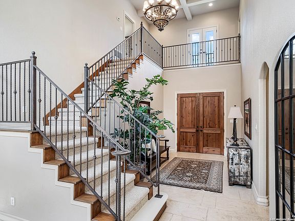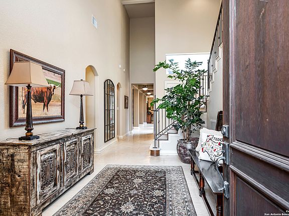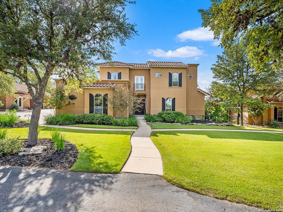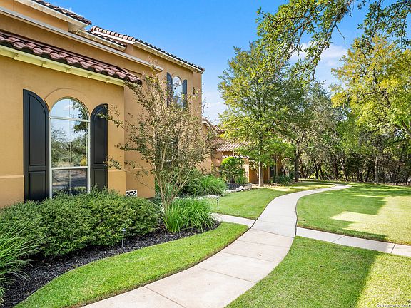 Master Transferrable Golf Membership available for purchase! The total square footage includes: Main Residence: 3911 sq.ft., 4 bedrooms, 4 bathrooms, 1 partial bath. Casita: 602 sq.ft., 1 bed, 1 bath. Detached air conditioned 3 car garage w/man cave: 1615 sq.ft. This beautiful hill country home is nestled on 4.6 private acres that boasts beautiful towering mature trees and manicured landscaping! The grand foyer, with a two-story soaring ceiling, is a welcoming introduction for you and your guests! Dual living and dining areas are gracefully integrated and provide ample accommodations for everyday living and entertaining. Warm tones, jagged-edge travertine flooring, exposed wood beams, crown moulding, walls of windows and natural lighting cohesively blend to create a relaxed feeling throughout. Each principal room offers access to grand and intimate outdoor living spaces. The gourmet kitchen is the heart of the great room and opens to the family room and breakfast area! Features include stainless steel appliances, a Wolf 6-burner gas range and oven, a Jenn-Air built-in oven, stone wall accents, intricate backsplashes, copper stamped vented hood and a breakfast bar. The owner's retreat boasts a spacious bedroom suite with serene property and pool views, spa-infused bath, separate vanities, Jacuzzi tub, seamless glass walk-in shower with dual shower heads and an expansive wardrobe room. Also situated on the main level is a secondary guest bedroom and home management center. The second level reveals two secondary bedrooms with en-suite baths and walk-in closets, a Juliet balcony overlooking the hill county and a generous walk-in attic storage room. For year-round enjoyment, the outdoor spaces will not disappoint and are both relaxed and exhilarating. Whether enjoying the company of a few close friends or hosting larger gatherings, the living and dining areas capture balmy evening breezes and invigorating sunsets, overlooking the custom pool with its soothing waterfall and adjoining spa. The cabana is complete with a gas grill, icemaker, fireplace and serving bar. Additionally, there is pergola patio, which is ideal for enjoying refreshing libations and visiting with family and friends. Just beyond the pool is a one-bedroom casita with dual entrances to the front and back yards, a living/dining area and kitchenette which provides ample accommodations for overnight guests. For the car aficionado there is an attached oversized three-car garage plus a detached three-car garage complete with air-conditioning, a man cave and a partial bath with Ferrari swinging entry doors. The man cave area is complete with a wet bar, sitting area for watching sports, a golf simulator and Astroturf putting green for the avid golfer who would like to practice their swing before hitting the course! The oversized garage area is equipped with checkerboard flooring, a workbench area, air compressor and automatic attic lift for additional storage space! Special front and back yard lighting add to the allure of this breathtaking property! Come experience sophisticated hill country living with uncompromised entertaining that is the perfect canvas for any lifestyle! This property has a private water well and is on the central water source!