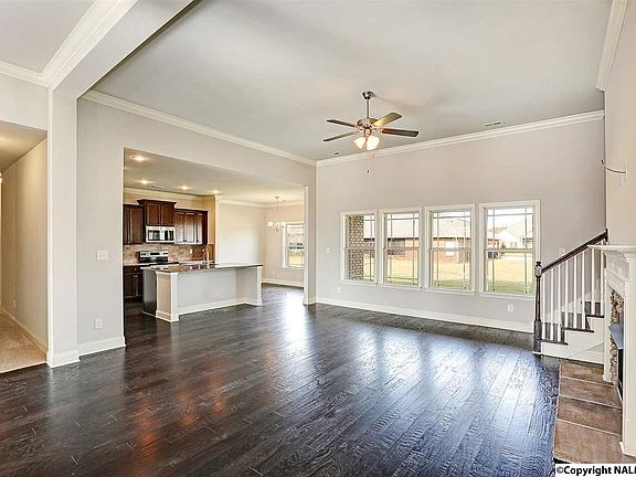 LAST HOME W/3 CAR GARAGE..Beautiful 4 Bed 2.5 Bath home w/ study, huge bonus rm & 3 car side entry garage to be completed by mid June! Open plan w/ hdwd floors & crown thruout main areas & master suite! Granite counters & SS appliances in the kitchen. Gas fireplace. FULLY SODDED YARD W/ IRRIGATION SYSTEM! Conveniently located btw Zierdt Rd & Wall Triana, just mins away from Redstone Arsenal, Boeing, & I-565. River Landing offers resort style living w/ over $1M worth of amenities--pools, clubhouses, fitness center, tennis/basketball/volleyball courts & playground. Ask me about our New Year New Home Incentive!