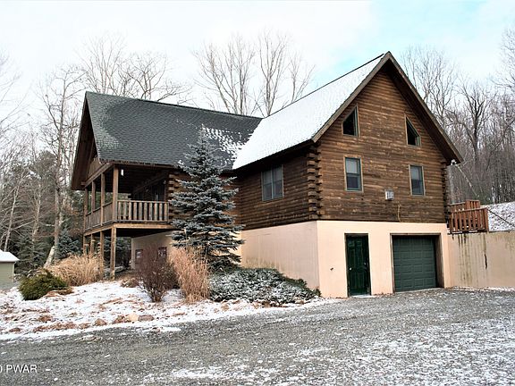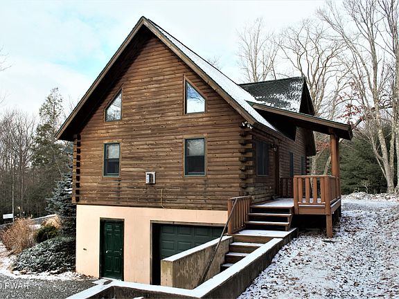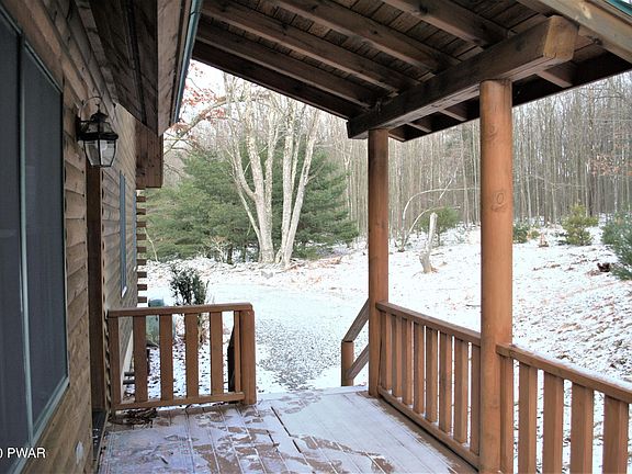 True log home gem nestled with privacy within beautiful Tanglwood Lakes golf community and with Lake Wallenpaupack Lake Rights!! This 3 bedroom 2.5 bath home features a gorgeous log design with tongue and groove pine throughout the interior, spacious Master Suite, new hardwood floors and a finished basement. Home boasts a stunning great room with an LP gas stone fireplace and plenty of off-street parking located on the edge of Tanglwood Lakes (backing up to private lands) for the best of community living with the added privacy. Basement can be used for living space or extra bedrooms for those looking to utilize for the ultimate family getaway. Take your golf cart to the Club House or to the ''Paupack'' from this location. Its a one-of-a-kind property and unique true log home!