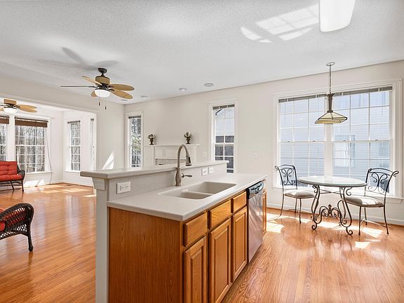 Serene woods with a meandering stream will provide beautiful natural views through the seasons for this well-maintained home. Features include a gracious arched and columned entry, tray-ceiling MBR, floor-to-ceiling cabinetry in the kitchen, a whole-house sound system, and tiered decks. The recently painted interior is light and neutral, ready for a new owner's personal touches. Stroll around the beautiful private lake and enjoy the many social activities offered at the clubhouse of this 55+ community.