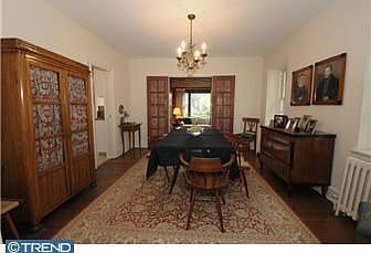 This well built and updated 2 story Colonial with pretty back yard and Garage in popular Carrol Park neighborhood. It is on a lovely street convenient to City Line. Private covered front porch leads to spacious Living Room with wood burning fireplace and custom built-ins, formal Dining Room with french doors that opens to panelled Den with picture window and bookcases. Updated Eat-in Kitchen with tile floor, backsplash, and double ovens. Powder room and exit to back yard. Upstairs, is the updated large hall bathroom wtih tub and separate stall shower. Nice Master Bedroom and two additional Bedrooms, bessler stairs to attic. Full Basement, separate Laundry Room, workshop and finished Living area, cedar closet and storage areas.