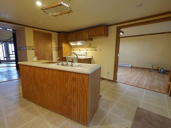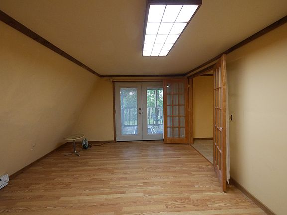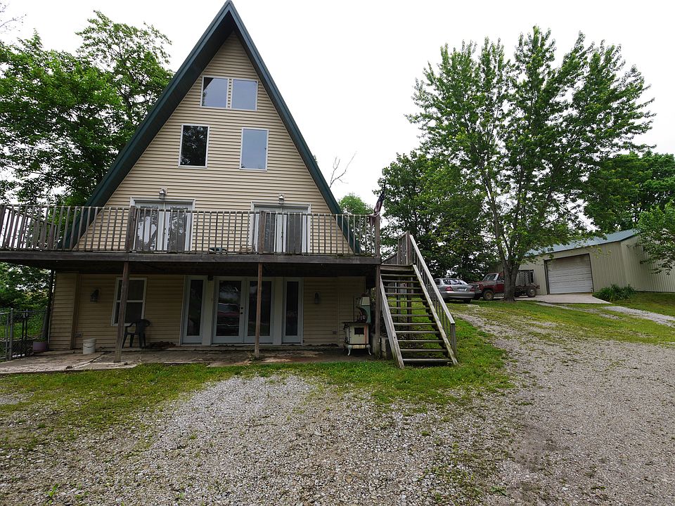 Unique A frame style home with high ceilings, open floor plan, and beautiful country surroundings! Bonus 30x40 outbuilding on concrete pad. Home sits on a total of 1.8 acres m/l, some wooded/hilly areas. City water & sewer. 2006: new siding, windows, exterior doors & roof. Home needs a little TLC. Finished basement gets damp. OWNER SELLING HOME AS IS AND WILL NOT MAKE ANY REPAIRS.
