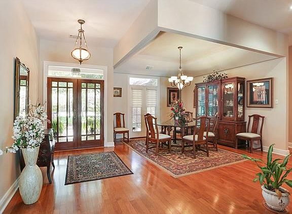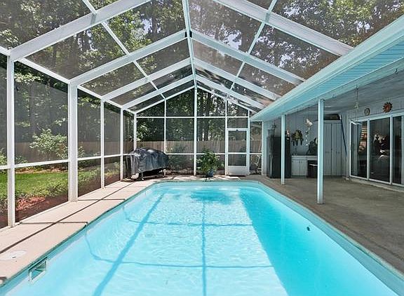 Beautiful 1 level home w/screened in pool for great entertaining. Superb floor plan. great location. Lots of hardwood floors; no carpet. Fabulous owner's ste w/high end renovation on lavish bath w/Mr Steam shower + all the bells and whistles. Custom Hunter Douglas remote controlled shades. Wall mounted TV's & home theater system remains. 10 ft clgs offered in this light and bright home. Split bdrm plan. Lush landscaping front & back. Privacy fence and one yr old 14 x 12 shed. Oversized yard backs to woods.