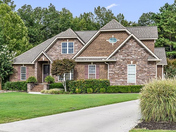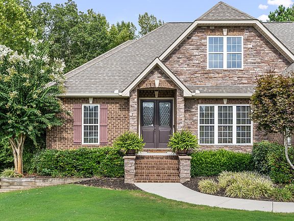 Stunning 4 BR/4 bath custom brick/stone home w/saltwater in-ground pool in desirable Creekstone! Gleaming hardwoods throughout. Tile in wet areas. Amazing kitchen w/island, gorgeous stacked cabinetry, s/s appliances, granite counter-tops, tile back-splash & bar seating. Charming breakfast nook w/built-in bench seating & custom table w/granite. Cozy great room w/gas FP & beautiful built-in cabinets. Dining room w/wainscoting & crown molding. Efficient office w/vaulted beadboard ceiling, large built-in desk & custom cabinetry. Spacious primary BR on main level with full bath & his/her walk-in closets. 2nd BR w/walk-in closet is convenient to 2nd full bath. 3rd BR w/Jack & Jill bath to office. Huge bonus room! Covered back porch. Private, fenced back-yard. 15 minutes to Tims Ford Lake.