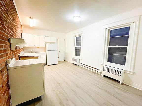 There is a two-bedroom, one-bathroom apartment available for rent on the second and third floors of a building in Allentown, conveniently located near shops and restaurants. The apartment features new vinyl flooring throughout, fresh paint in all rooms, and an exposed brick wall in the kitchen. - This lease is for one year. - The tenant is responsible for paying for all utilities such as electricity, gas, water and sewer, trash and recycling and snow removal. - A security deposit of one month's rent is required. - This is a non-smoking building, and there can be no previous eviction history. - The tenant's income must be at least three times the rent. - Pets are allowed for an additional fee, subject to certain limitations.