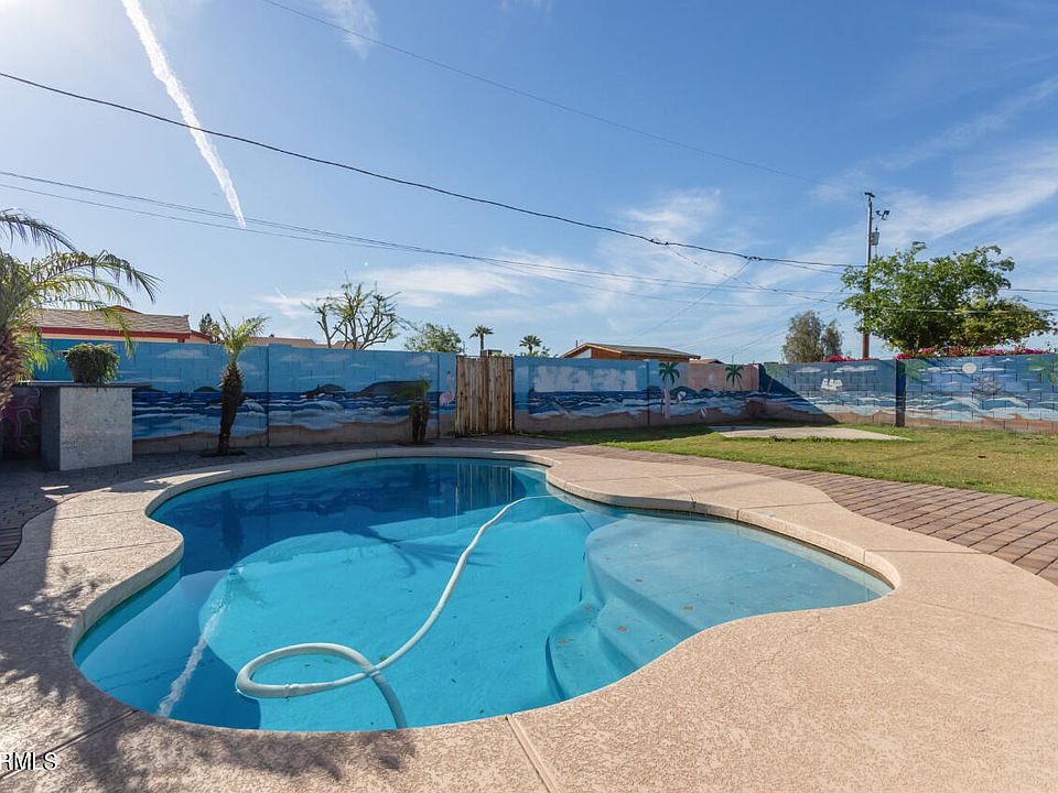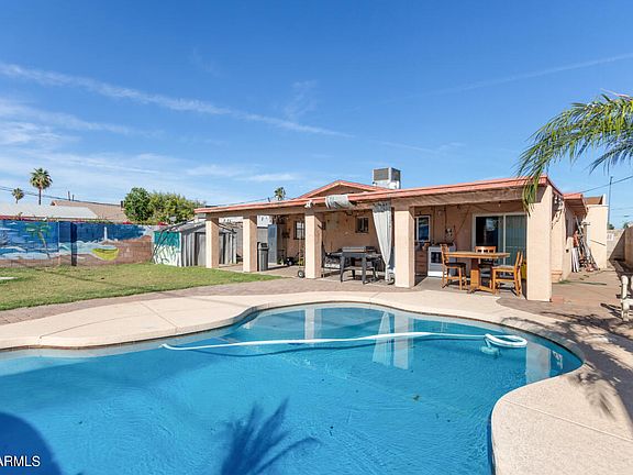 A charming 4 bed, 2 bath residence in the heart of Phoenix is now for sale! This fully gated home boasts a grass landscape, circular driveway, and a welcoming front porch! Inside you'll find a spacious living area w/elegant wood-look tile flooring and stylish archways, ideal for entertaining. The eat-in kitchen is comprised of white cabinetry w/granite counters and all the appliances you'll need for home cooking. Sizeable bedrooms guarantee comfort for you and your loved ones! The expansive backyard includes a covered patio and a sparkling blue pool perfect for the warm summer days. Located close to numerous restaurants, shopping spots, venues, and everything else downtown Phoenix has to offer, this is sure to be the home for you! Act now before it's gone!