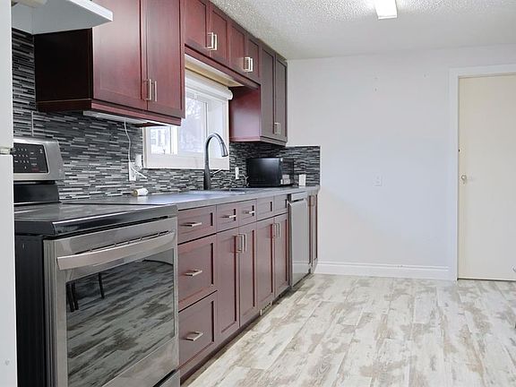 Welcome to this beautifully maintained 1.5-storey character home, offering the right space for a great starter home, income property or downsizing option. Built in 1938 and situated on one and a half lots, this 980 sq ft detached residence features a double driveway and a spacious backyard ideal for gardening or outdoor enjoyment. The home’s exterior has been updated with new vinyl siding, a durable metal roof, and modern vinyl windows. Inside, you will find updated vinyl plank flooring throughout, along with a refreshed kitchen featuring new cabinets and countertops. The main level offers a bright and welcoming living room with a large south-facing window, two comfortable bedrooms, and a four-piece bathroom. A convenient rear porch includes laundry facilities and provides access to the backyard. The upper loft area offers flexible living space that can serve as an additional bedroom, guest area, or cozy living space. The poured concrete foundation provides a solid base, while the unfinished basement houses the utility hookups. Recent mechanical upgrades include a new hot water tank (2022), new furnace, updated 100-amp electrical service (updated by previous owner), central air conditioning, sump pump, and forced air heating. Sewer line has been fully replaced. Ideally located within walking distance to downtown amenities, schools, playgrounds, and recreational facilities. With its extensive updates, spacious lot, and inviting layout, this home presents an excellent opportunity for those seeking comfort, character, and value in the heart of Oyen. Contact your local Realtor today to book a showing!
