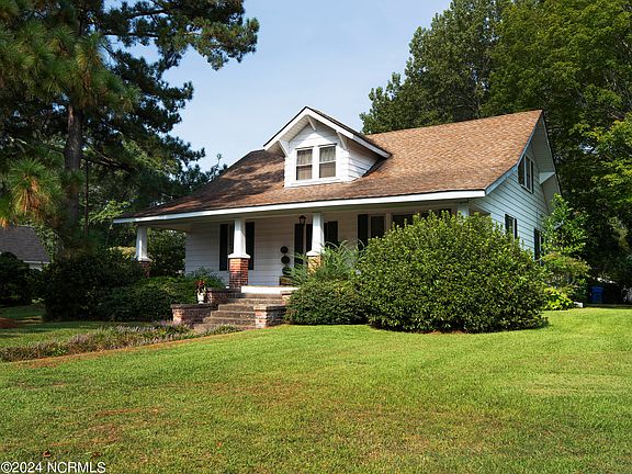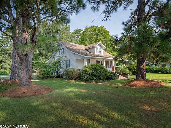**Charming 1923 Home on a Spacious Corner Lot** Step into this beautifully maintained 1923 home, offering 4 bedrooms, 2 bathrooms, and a warm, inviting atmosphere. Situated on a lovely corner lot, this property boasts classic curb appeal with a large front porch perfect for relaxing mornings and a back patio with composite board decking ideal for outdoor entertaining. Inside, you'll find stunning original wood floors throughout, showcasing the character and craftsmanship of the era. The first floor features a generous living room with a cozy fireplace, a formal dining room for elegant dinners, an eat-in kitchen, a den, two bedrooms, and a full bath. Upstairs, you'll find two additional bedrooms, a full bath, and an office or storage room, providing ample space for all your needs. The partially fenced yard includes a shed for extra storage and a fenced-in section perfect for pets or gardening. The home comes complete with essential appliances: refrigerator, stove, dishwasher, washer, and dryer. Additionally, the gas tank is owned and included with the property. This charming home is walkable to the Pinetops baseball fields, which host many youth baseball games throughout the year, as well as a community park, grocery, and other stores for added convenience. Plus, the beloved Pinetops Christmas Parade is just a block away, making it easy to enjoy one of the community's favorite traditions. Don't miss your chance to own this timeless gem that perfectly combines historic charm with modern conveniences. Schedule your showing today!