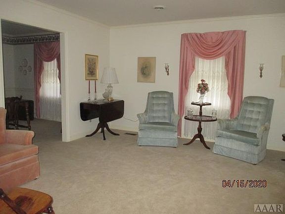 Well maintained classic brick home in the city. Formal living and dining rooms, den with builtin cabinets around the fireplace, foyer with wood floor & closet, cute kitchen with built in double ovens and bar. This home features three bedrooms, two full baths with tile, utility room with built in ironing board & nice cabinets, lots of closets, gas pack HVAC and central air. The exterior features include attached carport, workshop (recently painted) with carport, gutters, pole light and swing. Convenient location in the heart of Elizabeth City! Flood Zone X!