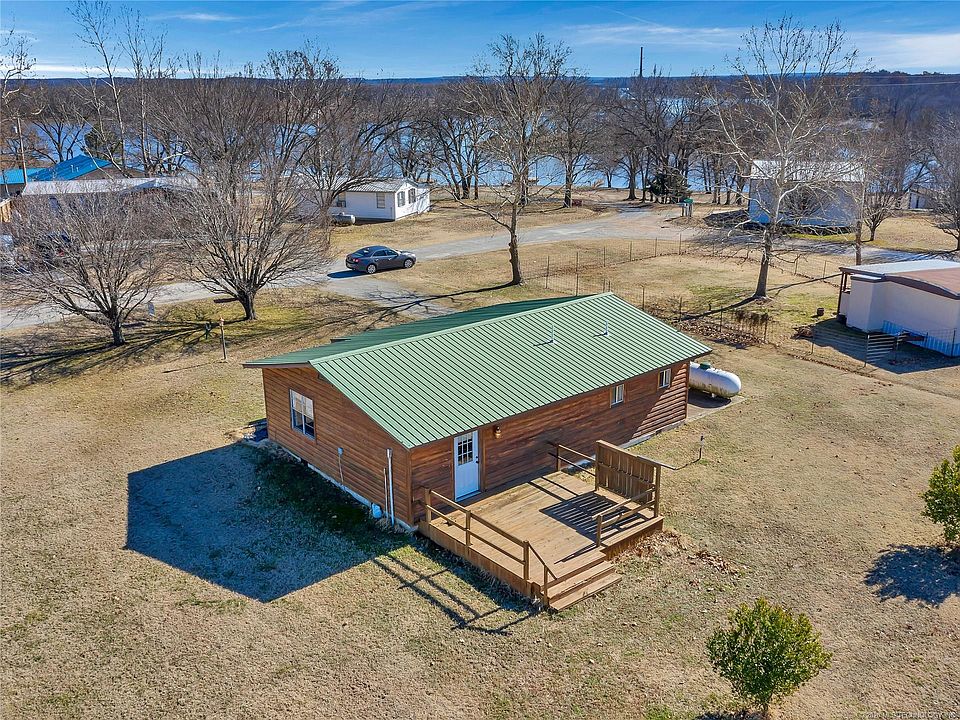 Cozy log cabin with amazing Lake Hudson view and access in Rogers Cove. Escape to the year round peace and tranquility this 1bed/1bath cabin offers. Open floor plan perfect for a weekend retreat, VRBO or AirBnB, front porch and back porch for outdoor cooking, 30x40' +/-work shop with 12X17' +/- office space for home based business or multiple hobbies. Enjoy wildlife, meditation, hiking, fishing, and all water sports minutes from your doorstep.