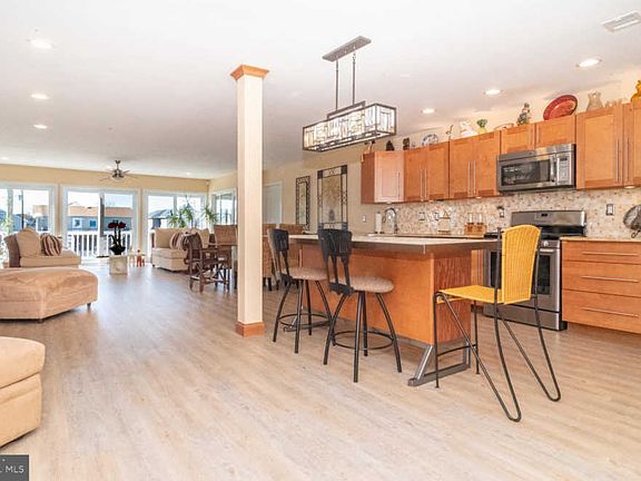 Talk about a Hidden GEM. This is the must-see property of Mystic Island. The upgrades and details can be seen throughout. The first floor garage/ bar/game room is MASSIVE (approx 1800 sqft)! With sliding doors that lead out to a covered porch and views of the water, it is just waiting for you to entertain. There is a lift/elevator that connects the 1st Floor to the Main Floor. The Main Floor (approx 2000 sq ft) is Wide Open for all your entertaining needs. With a custom center island, this space is great for a large family or for all the friends you didn't know you had (until you bought your beach house). 3/4 Bedrooms also make up this floor with 2 full baths (each with custom granite tile work). The enclosed porch is great for when you are getting out of your boat or Waverunner to dry off. The vinyl plank flooring really makes for a 'beachy' feel. The glass doors bring in an abundance of natural lighting. Laundry is on the Main Floor and never worry about your hot water with the updated insta-hot water heater. There is so march charm in this house from the pocket doors to tile work in the bathroom. The upper floor (unfinished approx 1400 sq ft) currently has an office with natural lighting and a view. Finish the rest of another massive bedroom(s). There is a ton of storage throughout this home and on each level. The options are up to you. This home is HUGE and deceiving from the outside. House was raised and 100% remolded in 2018 (NEW plumbing, electric, window, roof, the list goes on) a MUST SEE. Agents, please see remarks.