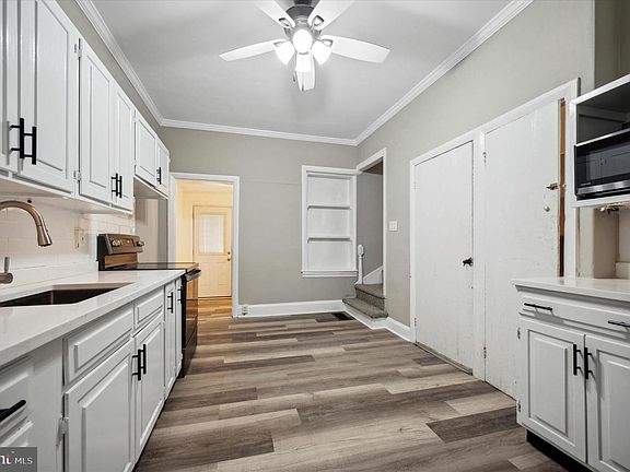 WOW - lots of house: 3 beds + 2 full baths. Freshly renovated; fresh paint, replacement windows, and vinyl siding | roof (under 2 yrs). Newer HVAC and hot water. Classy new 2nd floor full bath. Custom rails on private upper level loft bedroom. New front and rear entry doors. New LVP flooring, quartz countertops, subway tile back splash, cabinet pulls, blk stainless steel appliances, ceiling fans, updated lighting, crown molding. 100 Amp panel. Basement storage space. Private 6' wood fenced in back yard with 2 parking spaces ==> ideal for kids, pets, or chilling & grilling. Convenient location; close to major roads + shopping.