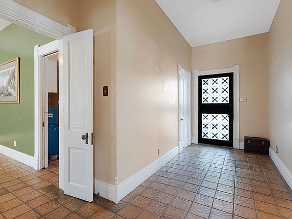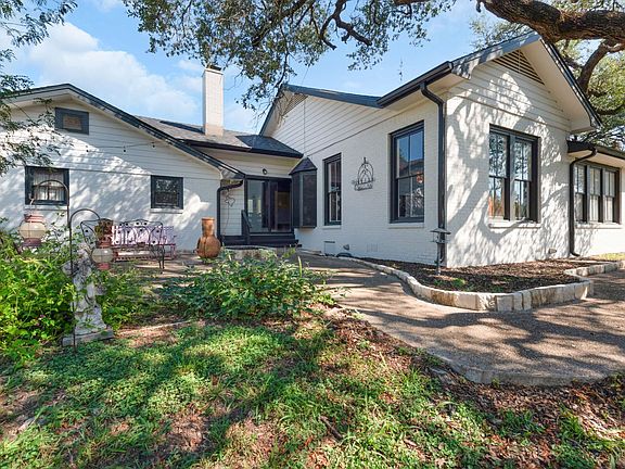 This is a rare opportunity to purchase a historic home built in the early 1900’s chock full of character and surrounded by gorgeous ancient Oaks. The 2360 square foot brick home is charming with original Oak flooring, 2 wood burning fireplaces, original doors with pewter knobs and beveled glass, Victorian decorative millwork door and floor mouldings, original window seats with storage, floor to ceiling windows, original pocket doors & French doors, ample storage with oversized closets featuring upper storage closets and unique built-ins, plantation shutters, and 10 ½ foot ceilings. This lovely 3 bedroom, 2 ½ bath home features a dramatic entrance hall, large living area with fireplace, formal dining room with chandelier and swing door, breakfast/ sitting room (sunroom) with fireplace and shiplap walls, updated kitchen with bay window featuring an oversized gas range, granite and quartz counters, built-in wet bar / butler pantry, large laundry room with washer & dryer, primary bedroom with en suite bathroom and 3 large closets with overhead storage closets and lovely storage window seat. The huge third bedroom is an optional Flex space with 2 closets and a wall of built-in cabinets and shelves. The landscaped yard features two courtyard areas, sidewalks, brick lined flowerbeds, and brick columned fence posts. Attached to the home is a 2-car carport with two double storage closets and an attached storage room with an attached non-working half bath (could make a perfect home office area).