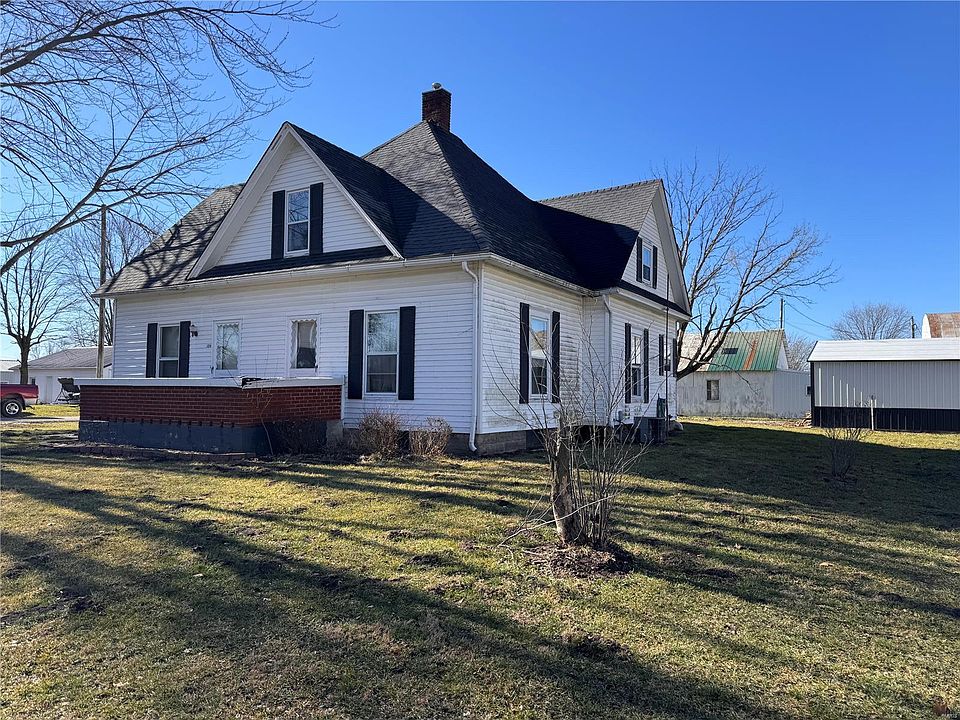 Historic home in the well-loved school district of North Shelby. This well taken care of home has plenty of space; over 1800 sq ft. There are 2 bedrooms on the main floor. There 2 ways to heat this home with propane wall heaters as well as a forced air furnace. There is a functional open kitchen with oak cabinets. The house has beautiful large wood trim throughout, which has not been painted, & original hardwood flooring exposed in one of the main bedrooms and could be exposed throughout if wanted. The house also offers a unique attic space with nearly 350 square feet of it being finished, which is a neat additional space for the house and could be a possible 3rd and 4th bedrooms. The house has a charming, covered porch as well as a concrete open porch, offering plenty of outdoor seating areas. The property comes with .38 acres and THREE garages, one attached and two detached. The garage built in 2017 is insulated and does have a propane wall heater, which makes for a great