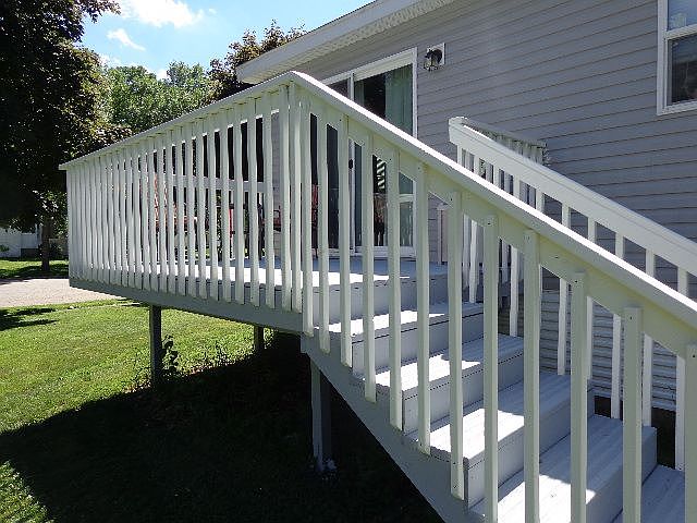 Ranch style 2 bed, 2 bath with gas fireplace, 12 x 8 foot deck, stainless steel appliances, master bath.