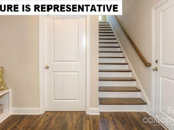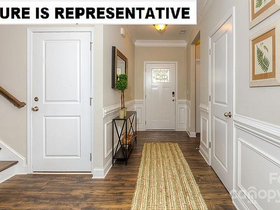 The popular Bristol plan features wide entry hallway with wainscoting, drop zone area, 9 ft ceilings and crown molding throughout home. The living room with gas fireplace is open to the spacious kitchen and adjoins the dining area. Primary bedroom is large and features double raised height vanities with quartz counters, walk in tiled shower with built in bench and expansive closet. Features of this home also include Rev Wood flooring in living areas, halls, dining and kitchen. Tile in laundry and baths, quartz counters and large island in kitchen. Gas range, microwave, dishwasher and garbage disposal are included. Home also features on demand water heater, Hardie board siding, architectural shingles, gas fireplace and much more! Come tour this beautiful community located near downtown Troutman, Lake Norman State Park and all the shopping and dining that Mooresville offers!