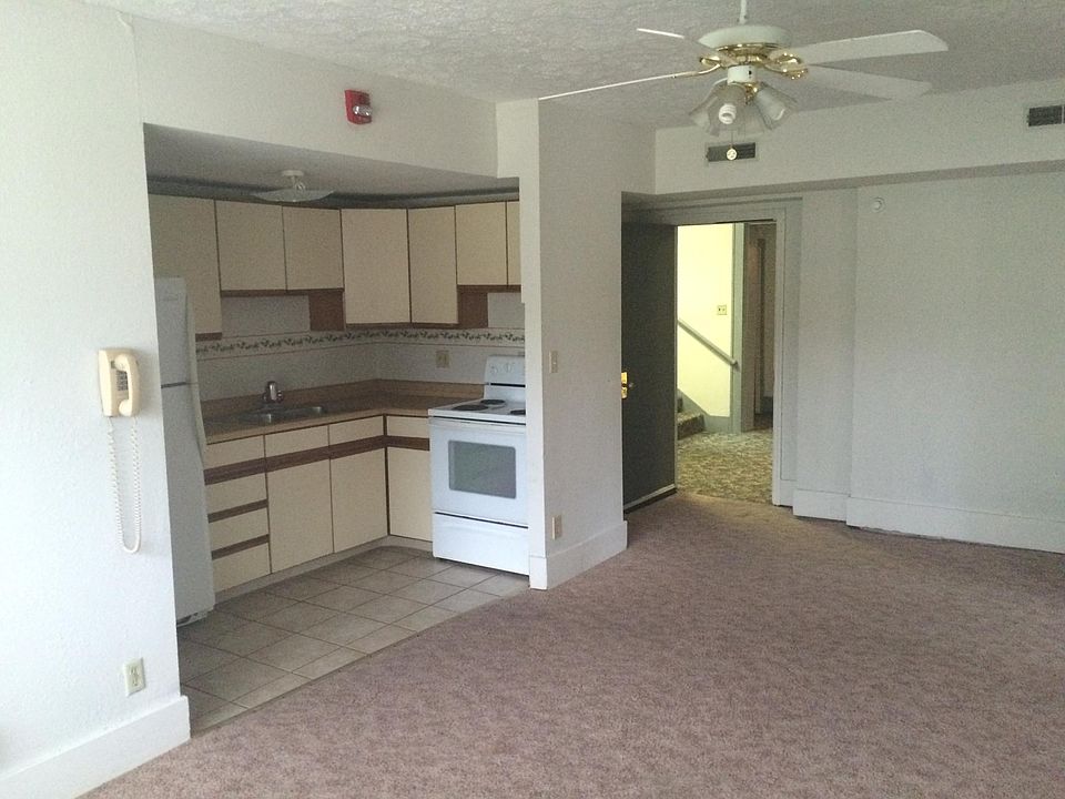 Location Location Location! This inviting 2 bed 1 bath apartment is steps from DePauw University and downtown Greencastle. Apartment will be freshly painted; kitchen and bathroom will be refurbished before move-in. Large bedrooms include spacious closets. Galley style kitchen features hardwood cabinets, refrigerator, and electric range oven. Water and trash included. Tenant pays electric, gas, and cable. On site coin operated laundry NO PETS AND NO SMOKING Tenant pays electric, gas and water/sewer. Landlord pays trash.