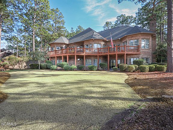 Custom home like no other in desirable Pinehurst No 6, a community of beautiful homes built around the Pnehurst Resort and Country Club No 6 Championship Course. Panoramic views of the No 14 fairway in addition to views of a large tranquil pond from most every room on first floor and lower level. The floorpan boast a large open area leading to the first floor living room with fireplace, formal dining room and stunning kitchen. Walls of glass surround the entire back of home allowing great views while walking from one room to the next. The finished lower level is nearly a mirror image of the first floor and has a handsome family room with fireplace at the far end, plus two bedrooms with Jack & Jill bathroom. Great for mother-in-law suite or adult children living area. Both the first floor deck and the lower level covered patio wrap around the back of home and provide great space for entertaining or a quiet time in early mornings or twilight evenings. Meticulously maintained by one owner with HVAC service contracts, new lighting, etc. Voluntary HOA. Pinehurst Charter membership available for transfer with buyer to pay prevailing fees. Close to schools and shopping and easy drive to Fort Liberty.