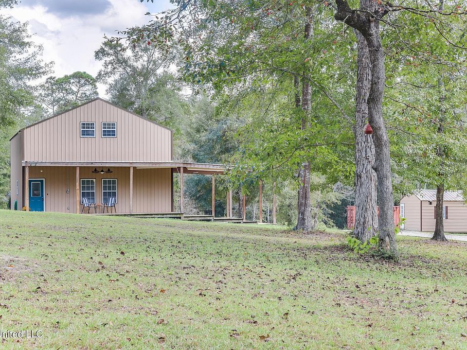 Country living awaits! Tucked away on 12.1 acres (MOL) in Stone County, this private retreat sits at the end of a quiet dead-end road, surrounded by peace and nature. The spacious 2,025 sq. ft. barndominium offers an open-concept layout with two bedrooms downstairs, a roomy laundry area, and a walk-in pantry. Upstairs, you'll find a large primary suite featuring a generous closet, private bath, and a balcony overlooking your very own slice of paradise.