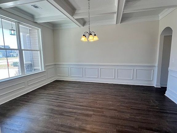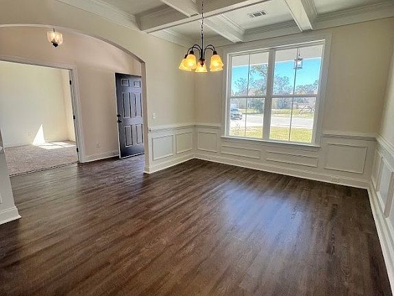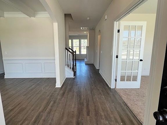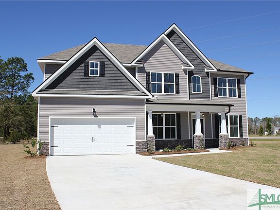Welcome Home to The Woodlands! The 3450 plan by Faircloth Homes offers 5 bedrooms and 3 full bathrooms. This home offers many upgrades! Coffered ceiling in the formal dining room, LVP floors in the great room. Gourmet kitchen with double ovens and cook top, tile backsplash and granite countertops. Downstairs you will also find a formal living room/office space, one bedroom and full bathroom. Primary bedroom upstairs, sitting room, primary bathroom. Media room/bonus room, 3 bedrooms, another full bathroom and the laundry room. Covered back patio with fan, fully sodded yard with irrigation system, 2 inch faux wood blinds, gutters on the front and back of the home. $5,000 towards closing costs with a preferred lender. South Effingham Schools.