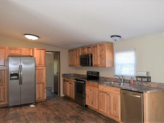 Come stop by and see this adorable, completely remodeled manufactured home on a great lot! It has an amazing open floor plan with new vinyl floors in the kitchen, laundry room, and bathrooms. New carpet in all bedrooms and living room. Large backyard with trees. New appliances, light fixtures, vanities, cabinets, duct work, and roof. Great landscaping and home has brick underpin. Home is de-titled, FHA financing available.