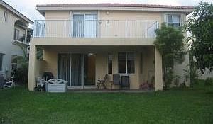 Perfect size four bedroom home with spacious lot, colorful dcor, and excellent community amenities. This home features pavered driveway, sidewalk, front porch and covered patio, open floor plan, laminate wood flooring on the 1st floor and carpet on the 2nd floor. Kitchen features 42" cabinets , Corian countertops & back splash, high hat lighting, pantry, and newer microwave and dishwasher. Master suite features a partial view of the lake, tray ceiling, high hat lighting, sliders leading to private balcony, large walk-in closet, spa tub, separate shower, dual sinks, and separate water closet. All bedrooms are located on the 2nd floor. Half bath and laundry room located off the family room. Accordion shutters on 2nd floor, panels for 1st floor. Security/intercom system.