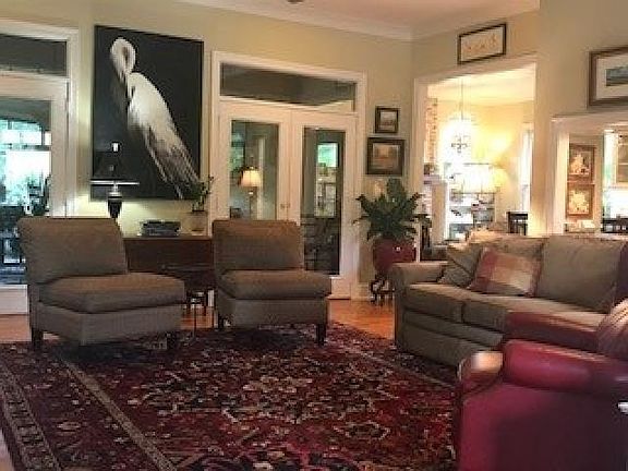Lovely home in the highly desirable Savannah Square neighborhood in Dinsmor, just steps from tennis courts, clubhouse, and pool. This home is ideal for empty-nesters or families with children still at home. Large windows bring the light of outdoors into the open floor plan -- perfect for entertaining. First floor has hickory hardwood flooring throughout. The charming kitchen features beautiful granite counter tops with spacious breakfast bar & serving area with glass-front cabinets. Updated stainless appliances include double oven and gas cook top. Keeping room has beautiful custom shelving and new wood burning fireplace with Old Chicago brick. Foyer and dining room open to great room with custom bookshelves, gas log fireplace, and French doors leading to large screened porch. Large master bedroom also opens to screened porch; master bath features a double vanity with walk-in shower, whirlpool tub, and separate w/c. First floor also has guest room, full bath off hallway, cozy office, and large laundry room. Bright, large open room at top of the stairs with bookshelves makes for a great children's den. Two light-filled bedrooms share a jack-and-Jill bath. Second floor has separate HVAC unit. Both units replaced recently. The screened porch, with gas grill on granite counter top and new wood burning fireplace, is also great for entertaining. Lovingly landscaped backyard surrounded by mature trees with wood and brick fencing offers privacy. Outdoor patio contains a fire pit for chilly autumn evenings. Security system, sprinkler system, insulated doors and windows. Wonderful neighbors are one of the best features of Savannah Square living; friends often gather in the common green space. The street is quiet and great for families with children. This well-maintained home was built in 1999 and contains 2,728 square feet. Priced at $379,500.