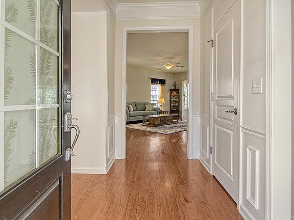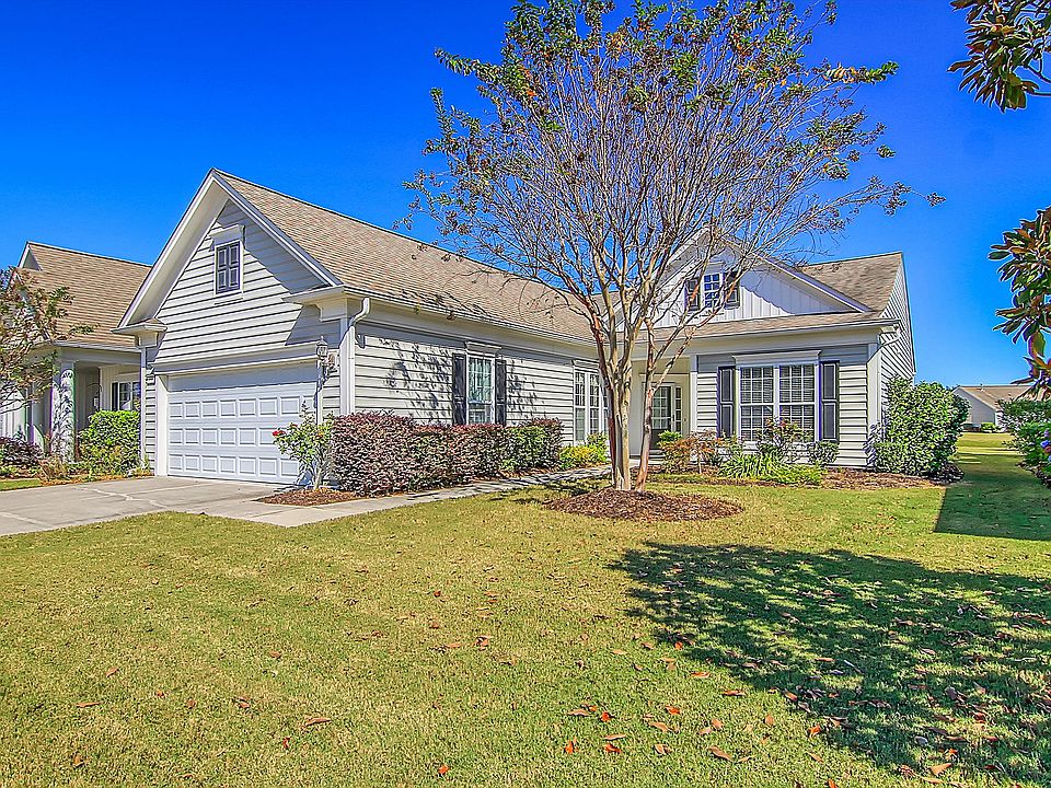 Popular Surrey Crest model featuring 2 bedrooms, 2 baths, an office and sunroom in the Charleston area's premier Active Adult community, Del Webb Cane Bay. HVAC replaced in May 2020! Step inside to find hardwood floors extending from the foyer to the kitchen, great room, the French door office, and hallways. The large island kitchen includes Corain countertops, maple cabinetry with crown molding, stainless steel appliances including a gas range and French door refrigerator, and recessed can lighting. The spacious great room includes a cozy gas fireplace. A light-filled sunroom sits adjacent to the great room and overlooks a beautiful lagoon with lighted fountain. The Owner's Suite offers a tray ceiling, a huge walk-in closet and ensuite bath with tile floors, a large walk-in tile showerwith rain shower head, separate diverter, a built-in bench and grab bars, a double sink vanity, and linen closet. A secondary bedroom and a full guest bath sit down their own hallway, providing ample privacy for guests and owners alike. The laundry room is accessible from the garage and kitchen and includes the washer & dryer. Don't miss out on this opportunity to live in the area's most active 55+ lifestyle community! With over 100 chartered clubs, a full-time lifestyle director and full calendar of events, you'll be living your best retirement life at Del Webb Cane Bay!