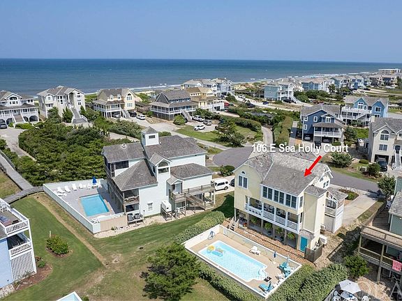 Premiere Location in Nags Head! "Beach Song" is a 90 second walk from door to sand, with no road to cross to get to the beach (east side of Hwy 12), on a cul de sac, with ocean views from top floor, and wide sandy, uncrowded, beaches! NO FLOOD INSURANCE NEEDED. This BEAUTIFUL, old Nags Head style home, located in The Village at Nags Head, is the one you've been waiting for. Gorgeous interior with hardwood floors, vaulted ceilings, totally renovated bathrooms and kitchen, a whole house generator with a 3 days supply of propane, elevator, big swimming pool, and too many to list 'special' touches. This is currently a year round residence, the neighborhood is a quiet oceanside cul de sac with limited traffic. Several of the neighbors are year round or 2nd homes. This is your dream oceanside home!! Come and see it before it is too late. Yes, it would make an excellent rental property with all the great home amenities and a "no crossing the street" boardwalk entrance to the beach just 1 house away!!