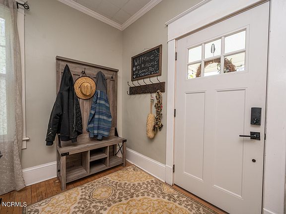 Welcome Home to this charming Craftsman located within the Historical District of Elizabeth City! Off one of the few Baltimore Brick streets, this Home sits well appointed with curb appeal galore - let your Home be the talk of the Town! Inviting front porch great for sipping a glass of lemonade on a Spring afternoon! Enter into the large foyer which is open for a multitude of uses. Character abounds in the large living area from the original HW floors to the brick FP & trim/molding details throughout. Hall features a charming built in & leads back to updated kitchen with charm and space! Dining space can be accessed from hall or LR. Half bath located on first floor for your guests! Utility room leads to a one-of-a-kind covered back porch. Space is thoughtfully decorated and setup featuring outdoor shower and hot tub. Walk-way to garage/shed and parking galore! 2nd floor features 4 spacious bedrooms and large updated Hall bath. Access to 3rd floor attic! Be sure to call this Home Today!