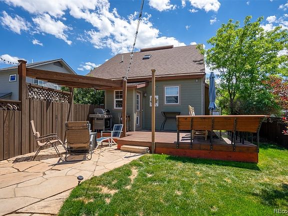 Located on a quiet street sits this 3 bed 2 bath single family home with a large outdoor space and yard. The shaded front yard leads to a covered porch and front door. You enter to an open sunny living room that connects to the kitchen / dining area. Off the kitchen is a small mud room that walks out to the back yard and garage. The open back patio is great for entertaining along with a covered fireplace, outdoor pergola and fenced in yard. Also included on the main floor are new washer and dryer, 2 quest bedrooms than can be used as a home office or gym and one full size bathroom. The second floor is occupied entirely by the primary bedroom, a private bathroom with double vanity and a walk in closet. A large 2 car detached garage sits at the end of a long concrete driveway lined beautifully with flower gardens. Attached to the roof you will find solar panels utilized for a hot water heater that can supplement the included electric water heater.. Basement: CSPC